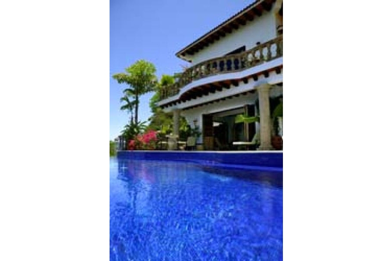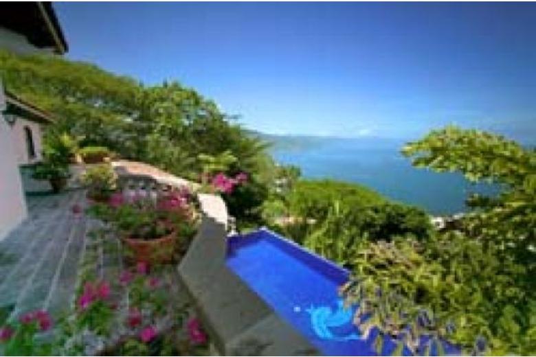 Madre Mountain and within Vallarta's most prestigious residential development Conchas Chinas, lies the spectacular Casa del Quetzal. Just minutes from downtown Puerto Vallarta, Casa del Quetzal is situated high on top of Conchas Chinas, delivering an incredible panomaric view of Banderas Bay.The bedrooms are situated around a central courtyard Hacienda style, featuring spectacular views from their terraces. An infinity pool that seem to dropp off the side of the cliff, offers the best views and place to enjoya refreshing tropical drink and just watch the world go by. There are three elvels, with the master bedroom on the top floor sporting plenty of privacy with a large terrace, spectacular bathroom and shower, and a walk-in closet.On the main floor are two more bedrooms facing the ocean, the main entertainment area in front of the pool, kitchen and dining. On the lower floor are two more bedrooms. An on-site cook and maid service will ensure that your vacation is a special one at Casa del Quetzal.