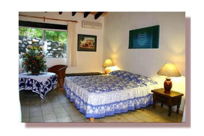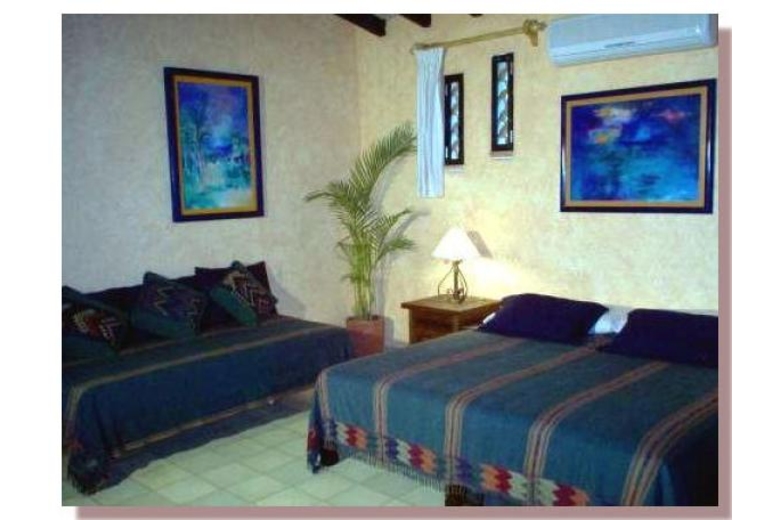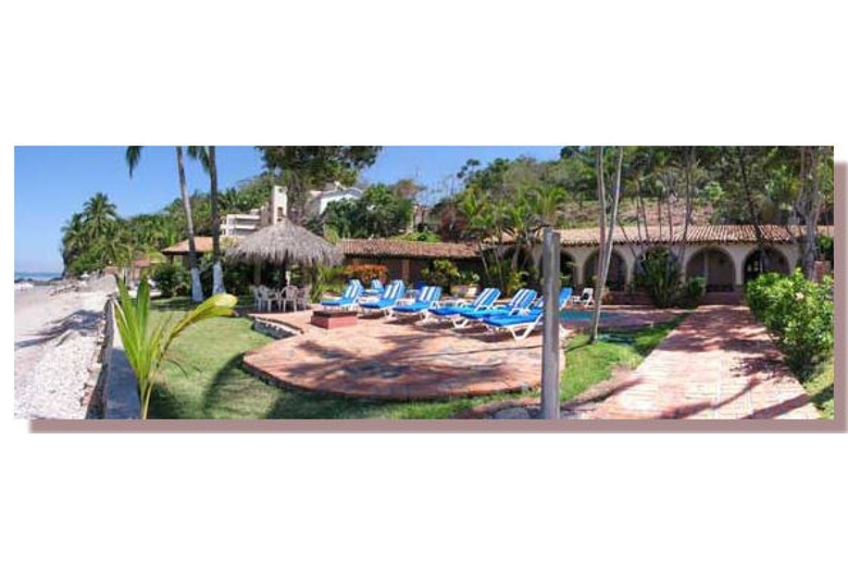 If you're looking for a Puerto Vallarta vacation rental villa right on the beach you've just found it!Casa Macumba can sleep up to 22 people (putting 4 extra single beds, one each in Rooms # 3, 4, 5 and 6: optional). This Mexican rental villa is located only 5.8 kilometers (3.5 miles) south of Puerto Vallarta on beautiful Punta Negra beach just next door to Las Palmares beach. It is only 6 minutes to downtown (a $5.00 dollar taxi ride or a 50 cent bus ride). This Puerto Vallarta vacation rental home has 314 linear feet of beach frontage and sits on 30,515.00 square feet of prime real estate. The rental property also includes 103,721.00 square feet of adjacent tropical rain forest, which gives the villa a special privacy. There are no roads, boardwalks or other villas in front of Casa Macumba, and the beach is only 7 steps away where you can enjoy excellent swimming and other water sports. Proximity to beach makes it easy to keep an eye on your children when they're in the water. A special bonus for guests is that they can see whales, dolphins, flying fish, turtles, manta rays and an array of other sea life right from the villa.