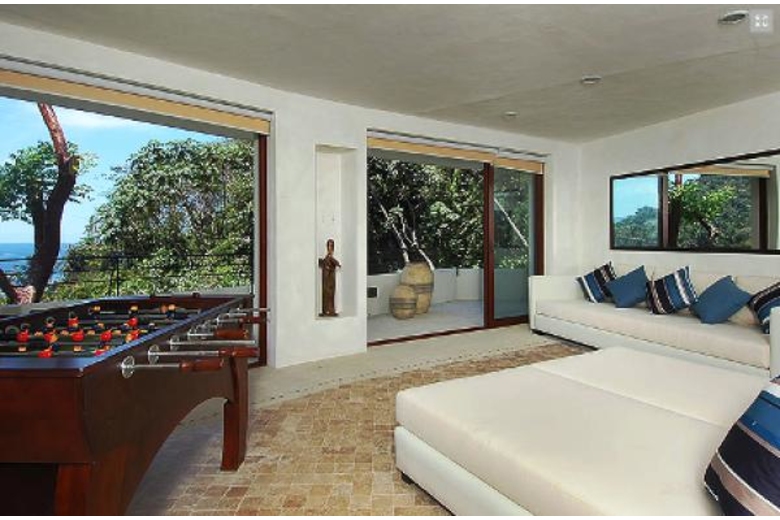 Casa Castelli is located on the Pacific Coast of Mexico’s Mismaloya Bay only 15 minutes south of downtown Puerto Vallarta. This villa is a living, breathing exhibition of art, nature and architecture. Marble, Iron and stone seem to dance together throughout the house with a visual message that evokes the old world charm of Italy mixed with the laid back personality of Mismaloya’s Puerto Vallarta coast. Balconies, an infinity heated pool, an enormous outdoor barbecue and several secluded niches for enjoying the breezes and views of the Pacific Ocean. Each of the 4 bedrooms have absolutely amazing oceanviews. The open and artfully designed master bedrooms and enormous bathrooms have natural light cascading into them from their floor to ceiling windows, luxurious bathrooms’with free standing Jacuzzi tubs and sliding glass walls. The villa has a gourmet kitchen, large sliding frosted glass doors open onto the enormous formal dining and living room area open to the pool terrace. The game room on the lower level offers a huge TV, foosball table and other diversions in a large comfortable room overlooking the ocean. The couches in the room convert into beds in case you have more guest than the home’s existing 5 beds can handle. Exit through a door from this room to a set of stairs that descends from the home leading you down a path to the water that is as beautiful as it is convenient. There’s a style unique to coastal Mexico’s architecture that is blended in this beautiful home with the essence of an Old world villa’s personality. The over 450 square Meter Casa Castelli brings her guests all of the grace and beauty of the old world, the best modern conveniences one could ask for, an amazing setting and award winning design. Why should you choose Casa Castelli? Because you deserve it. CharsVacationVillas.com