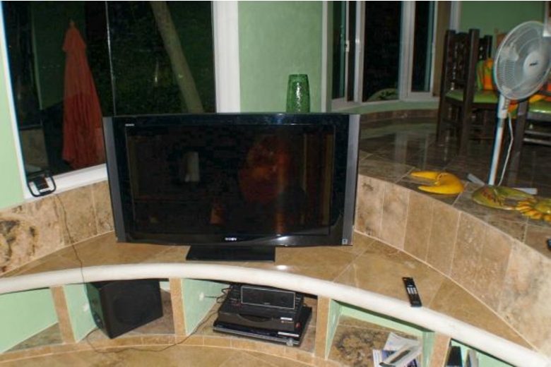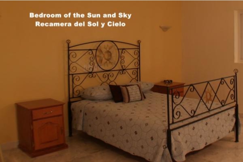 The villa offers 3 large bedrooms with 4 beds, each which a bathroom ensuite. The Master, has a King bed, a ceiling cupola and jetted bath. The 2nd bedroom upstairs holds 2 Queen beds. Upstairs bedrooms access the huge terrace... the best place to enjoy morning coffee and afternoon margaritas. The down bedroom is handicap accessible - the perfect location for the elderly family members.