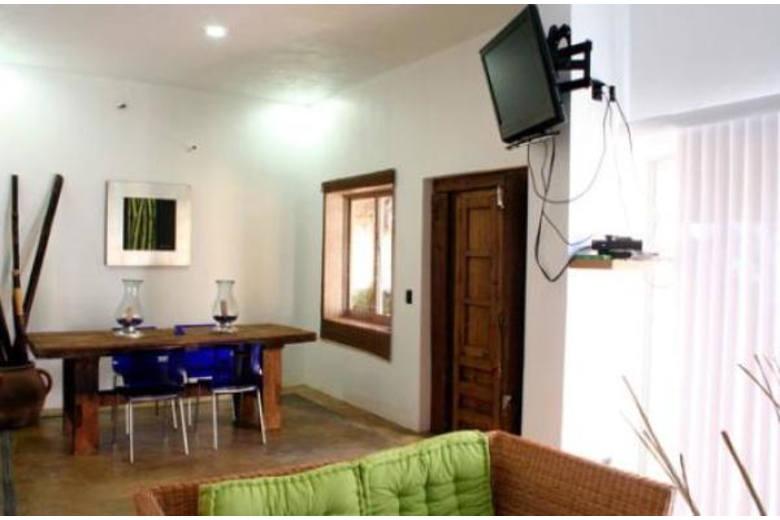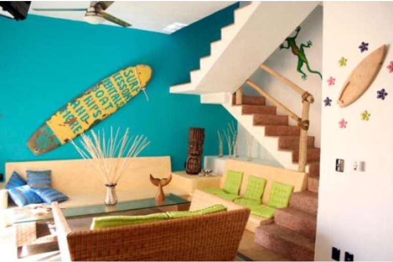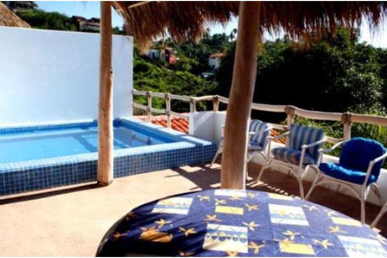 Villa Matilda is one of three luxury units sharing a common entrance and garden area, but still with complete in- dependency and privacy. Its first floor contains a full kitchen and luxurious living room complete with a large flat –screen TV. Both bedrooms are located on the second floor; each with their own individual attached private bathroom. Bathrooms are large, modern, and well lit. The top terrace is a private retreat offering a small pool, outdoor palapa-covered seating, and ipod stereo. This is the perfect location to have morning coffee/tea, and then margaritas in the evening. The views are expansive and the breezes are gentle. our stay at Villa Matilda in Sayulita will be very pleasant, comfortable, private, and relaxing. We are located towards the north end of town, just ½ block from Villas Sayulita
