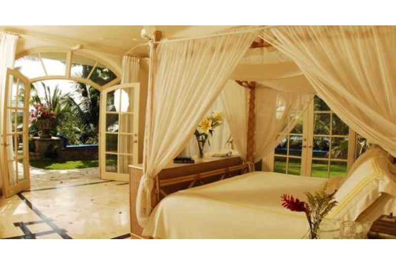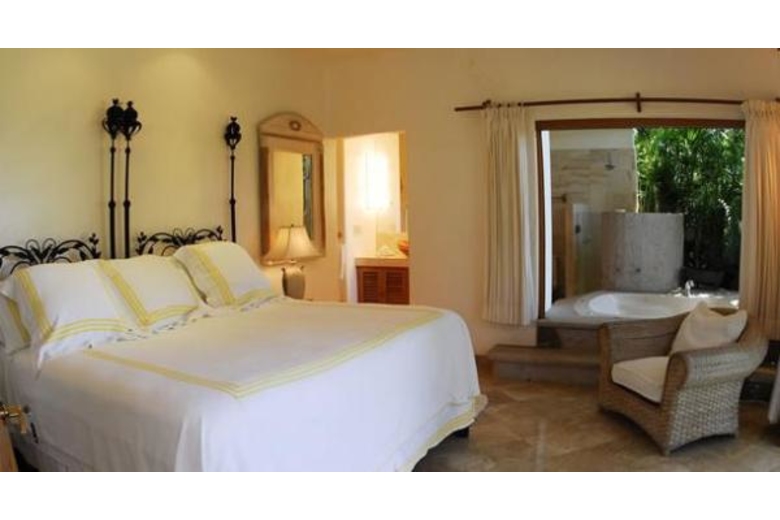 VILLA DEL OSO provides a total of seven suites, five suites in the main house and 2 suites in the guesthouse. Each suite with private bath, three of which have a Jacuzzi. The elegant original art-laden living space creates a luxurious harmony and continued delight for your stay.A marble entry framed by massive hand-forged local ironwork is graced by niches containing stone statuary of ancient native gods which provides a splendid transition into the magnificent spiral staircase offering a choice of ocean fronting levels of delightful living and entertaining spaces.At the heart of the main house a marble semi-circle bar separates several cosy conversation areas including the formal dining room and comfortable lounge areas for social gathering. The exquisite and fully equipped gourmet kitchen invites to prepare delicious feasts.There are five bedrooms Pool Bedroom, Oceanside Suite, Fountain Garden Bedroom, Ocean Terrace Bedroom #1, Ocean Terrace Bedroom #2.The Guest House Casa Osito: Easily accessed from the rustic cobblestone street and secure off-street parking area, Casa Osito is a magnificent extension of space to the main house or a beautifully efficient self-contained delight in itself. Lush tropical gardens and a winding drive connect Casa Osito with the main house complex of Villa del Oso. There are two bedrooms at the guest house 1. The "Garden Bedroom" 2. The "Tree House Suite".