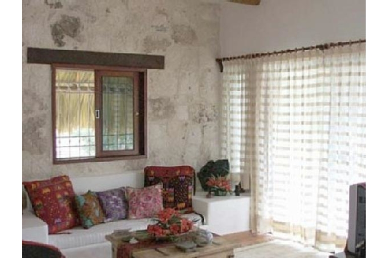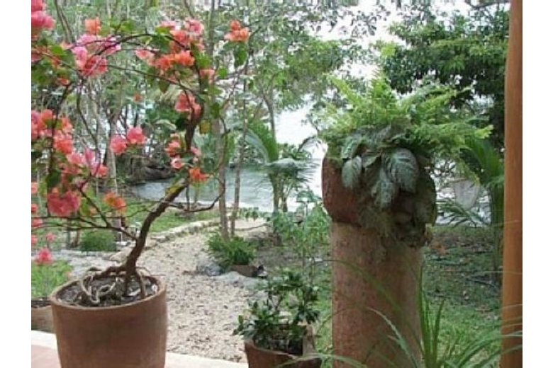 Casa Estrella de Bacalar is now finished and the dream shared with renowned architect, Ricardo Romay, has been realized. Overlooking a small, private cove on the shore of Laguna Bacalar, this gem of a house has all of the artistic features that define each space, designed to provide maximum appreciation of the magical laguna, with privacy, tranquility and comfort.From the long driveway through hardwood trees and coconut palms, to the entryway into the charming, spacious courtyard with its lovely landscaping and the fish pond at the entry door, there is an immediate appreciation of what has been created. Once inside, there is a stunning view of the magnificent blue-green waters of Laguna Bacalar which can be seen from the entry, the dining area, the master bedroom and the living room, all of which face onto the water. The central part of the house has a kitchen with beautiful hand-made louver cabinets, a wood and bamboo bar, and dining area which also opens to the terrace overlooking the laguna. All the magnificent woodwork in the house is made of native hardwoods, mahogany, cedar and others. Large, comfortable hammocks are strung on the terrace in front of the master bedroom and living room, with the space in the middle for outdoor dining.The spacious master bedroom suite features an amazing mosaic diptych by noted Mexican sculptor, Gilberto Silva, occupying the main wall, and an open area for reading, writing or painting. One need not be in a hurry to get out of bed in the morning for a view of the laguna which is just outside, past sliding glass doors leading to the terrace which fronts the house.