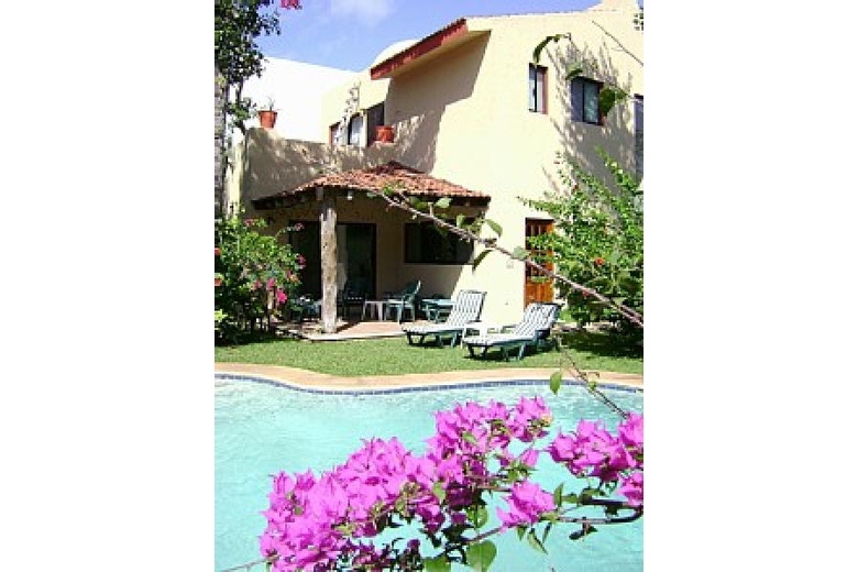 Villa Sol y Luna (Sun and Moon) is a secluded villa with private pool located near the beautiful white sand beaches of the Caribbean and on the top rated Von Hagge Golf Course in the Playacar Resort, a private, gated community next to Playa del Carmen. A 10 minute walk will take you to the beaches of the Caribbean, the ferry boat to Cozumel or enjoy the shopping, food and happy hours of Playa del Carmen. The villa is secluded and private, surrounded by lush tropical gardens hosting a variety of butterflies and tropical birds. Enjoy the peace and quiet of the sun terrace or the shaded pool patio.The freshwater pool is maintained daily by our caretaker who resides in separate quarters on the property. The maid will keep everything clean, stocked and worry-free. If you`re ready to take a tour or need assistance with anything, the bilingual property manager is available to assist you in any way. A phone, safe and purified water are provided at the villa. It is easy to get to Playacar from the Cancun Airport. It is a 40 minute cab ride or you can rent a car and drive down on the new highway; from Cozumel, the trip is a 40 minute ferry ride.This secluded private villa has air conditioning, pool, laundry, television and a full kitchen. The grounds include beautiful tropical gardens, with patio and private sun deck. Security and maid services (3 times a week) are provided. The house is a short walk to beach, downtown Playa del Carmen, or the ferry to Cozumel.