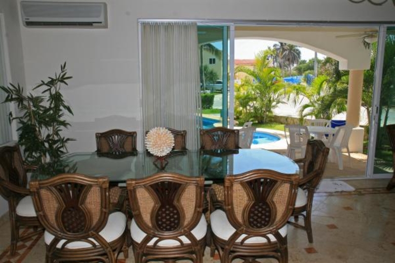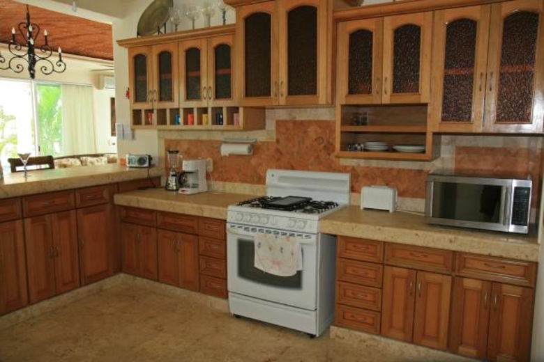 Our Playa del Carmen vacation villa with private pool has a large swimming pool and deck overlooking the ocean. Enjoy the views and night lights from the island of Cozumel from the decks and pool. Gourmet kitchen. All Travertine counter tops. One of the nicest rental homes in Playa Car Phase One. Maid Service is also available from Monday to Saturday. Numerous restaurants and shopping hubs are also in close vicinity from our Playa del Carmen child friendly villa near golf course.