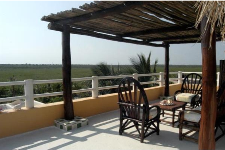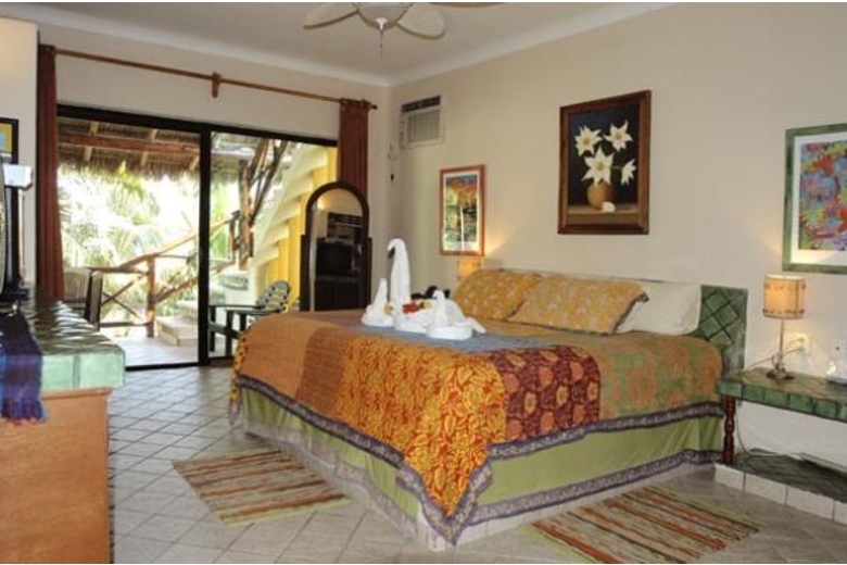 Rooftop: Bedroom Suite, has Great Views of the Ocean and the Jungle. Enjoy the Sunset in a Very Romantic, Private and Quiet Place. The Suite has a Palapa Roof Overhead, Bathroom, and A/C.