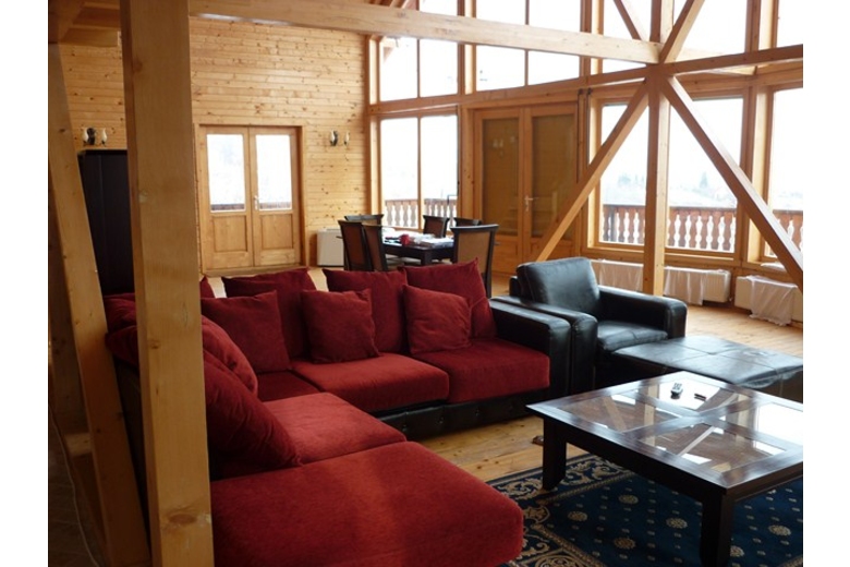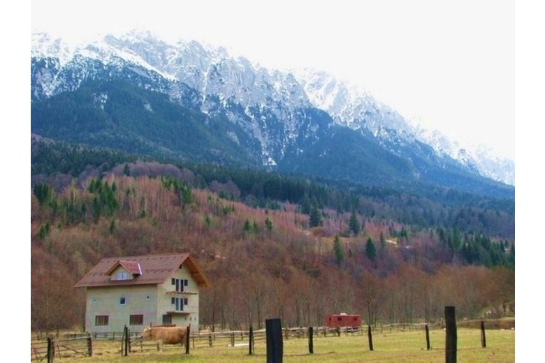This quality accommodation occupies a fantastic location in Romania. It lies directly on the slopes of a mountain in the picturesque village of Bran, where the famous castle of Count Dracula is located. From the house and veranda you can enjoy an unrestricted view as far as Brasov (approximately 25 km). The view from the house of the snow capped ridge of Piatra Craiului and the peaks of the Bucegi Mountains is truly breathtaking. The villa is situated at one end of a challenging and unpaved road.