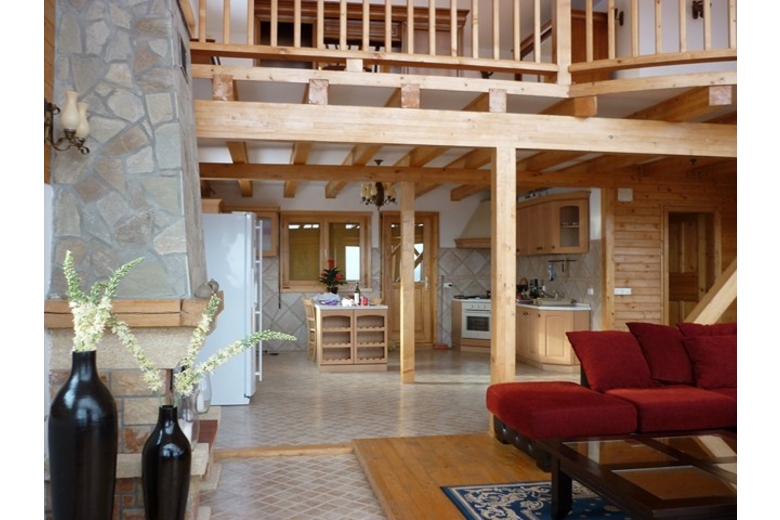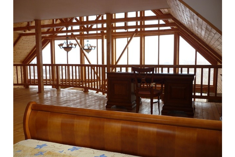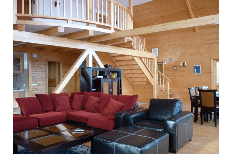 From the second floor there is a large loft which overlooks the living room. Thanks to the huge glass front, you can enjoy plenty of breathtaking views. On this floor there is also a half (open) bedroom and a separate bathroom with shower, toilet and sink. Furthermore, here you will find a sauna and Jacuzzi. From the Jacuzzi you can see the slopes of Piatra Crauila!