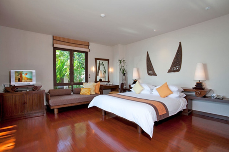BedroomsThe two master bedrooms are fully equipped with en suite, king sized bed, bedside table and plenty of storage space. The design is uniquely South East Asian and wooden floors give the rooms a very natural feel. Large wooden patio doors allow breathtaking views of the ocean and infinity pool. For those warmer tropical nights all rooms contain air conditioning for a cool evenings sleep.