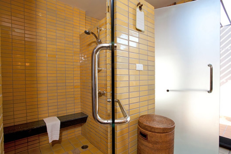 The two master bedrooms are fully equipped with en suite, king sized bed, bedside table and plenty of storage space. The design is uniquely South East Asian and wooden floors give the rooms a very natural feel. Large wooden patio doors allow breathtaking views of the ocean and infinity pool. For those warmer tropical nights all rooms contain air conditioning for a cool evenings sleep.