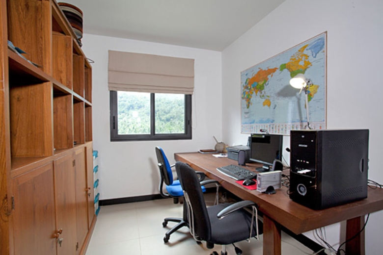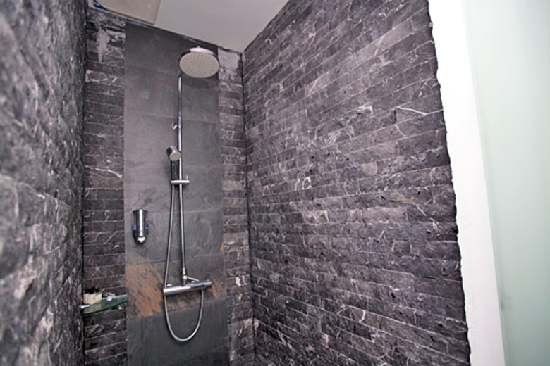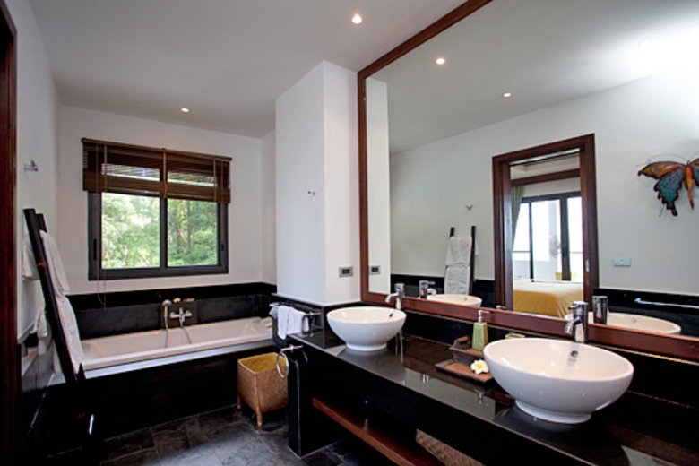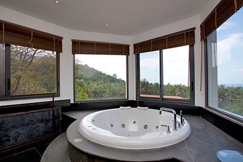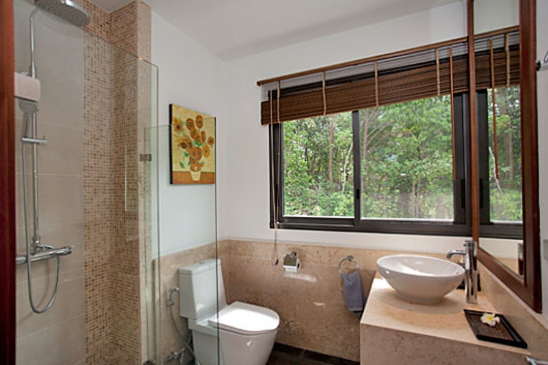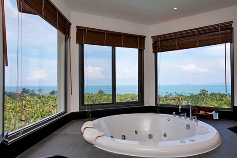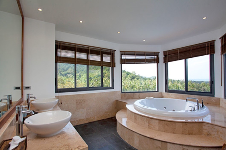 There are total of five bathrooms in this villa. One as a guest toilet, the second attached to the ground floor bedroom and the rest on the top floors connected to each bedroom. The master bedroom has a Jacuzzi with stunning bay views. Each bathroom has a separate shower, washbasin and toilet.