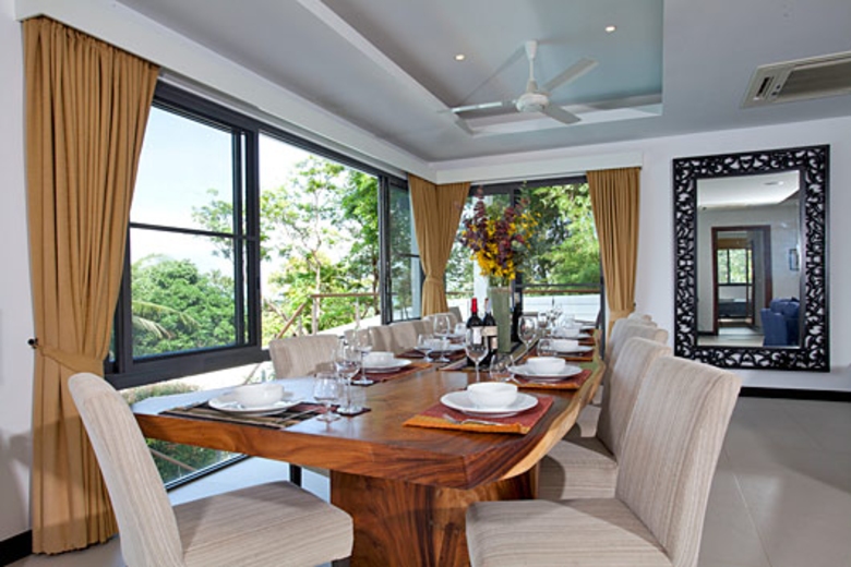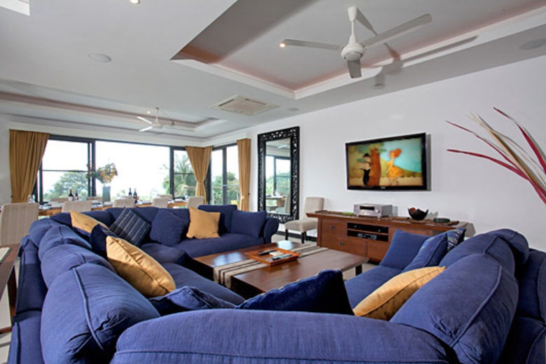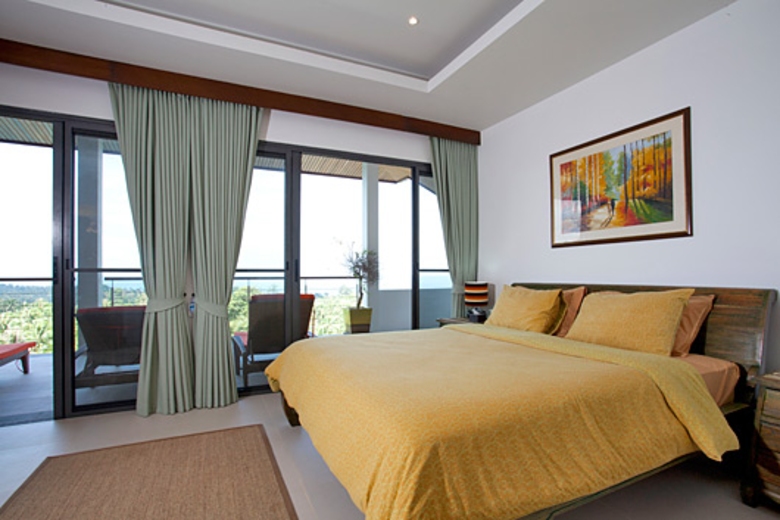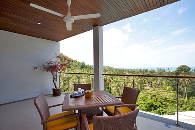 Set upon a hillside just a kilometre from the beach, this villa has it all: 360-degree views, scenery, entertainment, thrills, comfort, and luxury. Located on the northwestern side of Koh Samui, the main car-ferry port is less than 10k away and the nightlife and restaurants of Mae Nam even closer. The National Marine Park is also situated off this part of the island and Koh Phangan is directly to the north and within sight of your villa. Chaweng, which is the main entertainment centre, is some 18 km away with the airport nearly as far (so no aircraft noises) but you can rent vehicles from the villa help; just ask Daw!