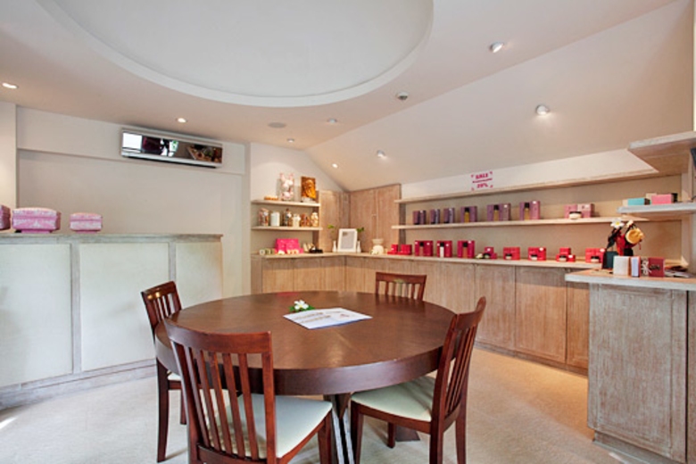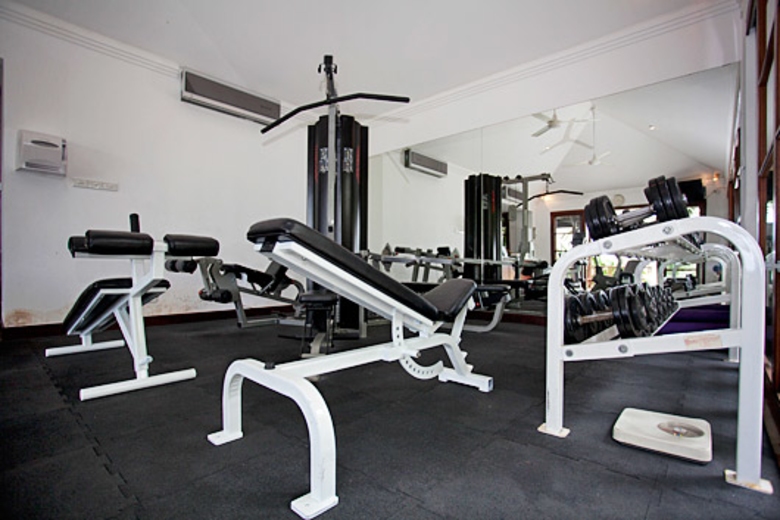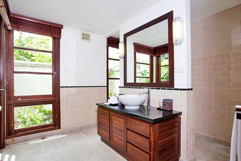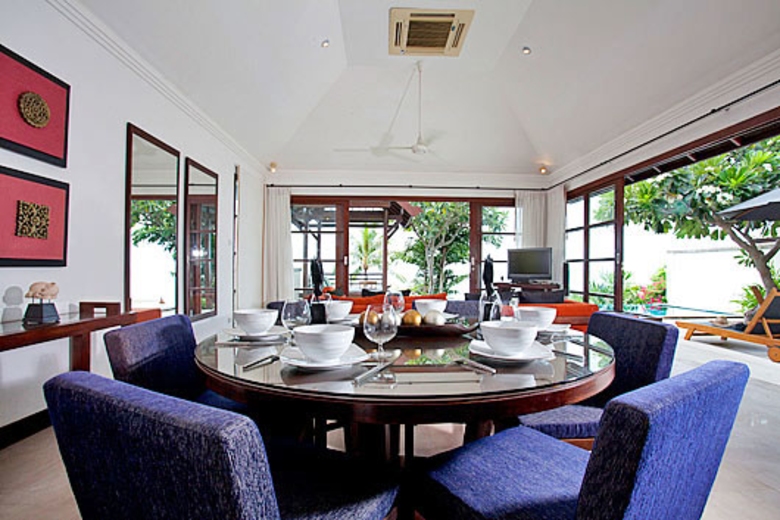 The dining room is also part of the open plan living space and comes equipped with a 6-seat circular wood/glass dining table. If you fancy dining outdoors, you could choose the terrace or the Thai Sala.