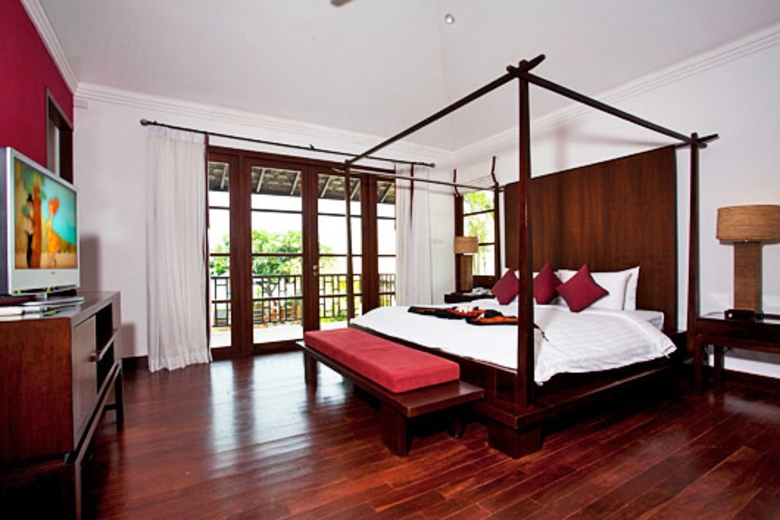 BedroomsThere are four bedrooms in total, two of which have double beds, with the third bedroom hjave two single beds and the remaining bedroom having a solitary single bed. All the bedrooms have wooden floors and air-conditioning. The Master Bedroom has a stunning four-post wooden bed and a spacious balcony where you can sit and take in the ocean views.