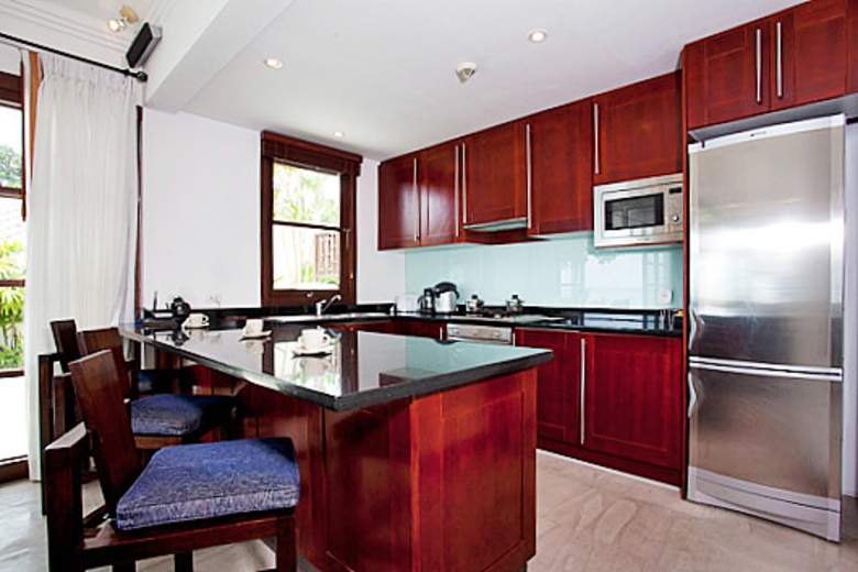 The living room is an ocean-facing space that benefits from the refreshing sea breezes. Gaze out from the comfortable fabric laden L-Shape settee and see the ocean in its full glory, or take a few steps through the patio doors and have a swim in your private pool. The lounge gives the impression that its encased in glass, which allows copious amounts of natural sunlight to cascade through the area. The entertainment features include a large flat-screen TV, DVD and a wide selection of international TV channels.
