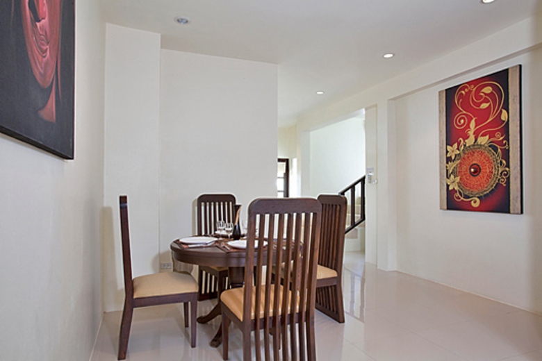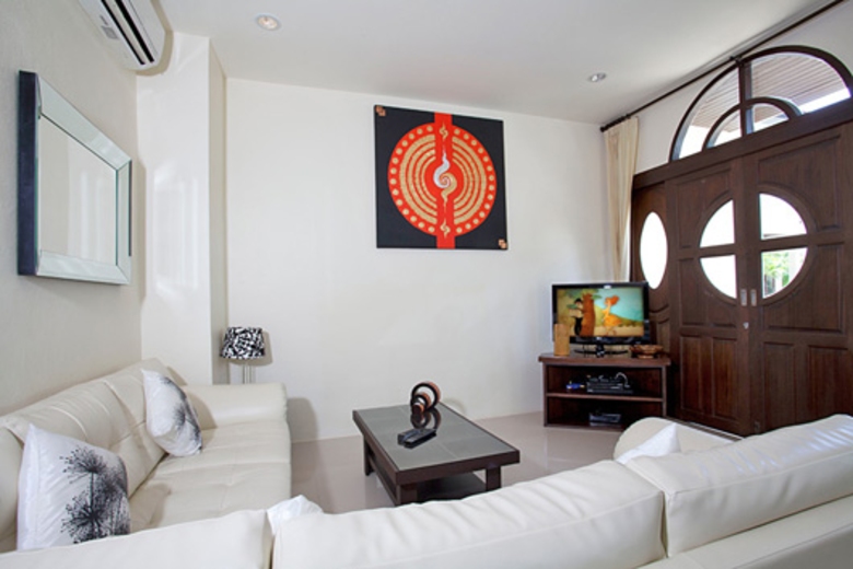 The living area offers comfort whilst relaxing in front of a good movie on the flat screen TV. A sumptuous L-shaped couch is complimented with attractive wall hangings to enhance the atmosphere, and of course, the private patio outside offers yet anther quiet place to relax, before heading off to the pool.