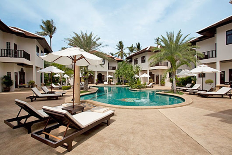 Set over two floors this two-bedroom property is one of ten nestling around a lagoon pool in the warmth and serenity of Koh Samui. Carefully tended gardens with mature palm trees and blooms at every juncture enhance the feeling of arriving in paradise. Sun worshippers will immediately notice the vast array of loungers and tropical umbrellas just waiting for the first tanning routine to get underway. Your private villa has all the facilities for a group or family of four, with a kitchen to prepare meals, a lounge to relax in and a double and twin room upstairs. A private terrace downstairs and balconies upstairs offer that extra feeling of privacy.