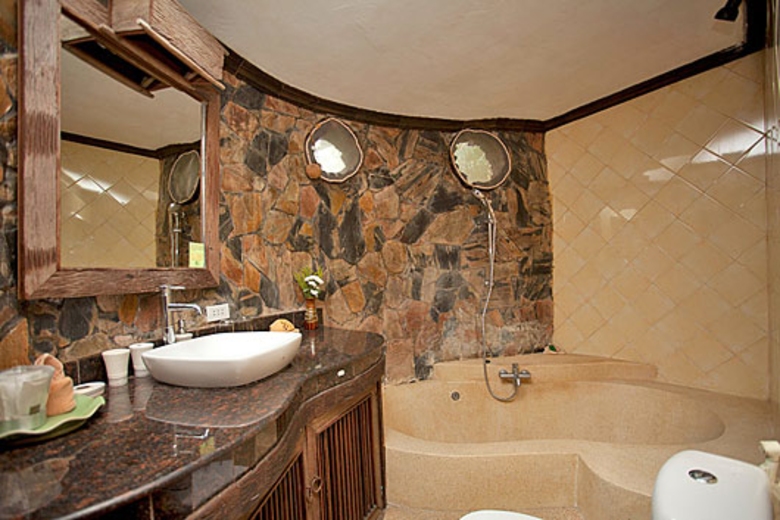 With a secluded location and being directly next to the communal swimming pool that the property boasts of, this villa is the only two-bedroom villa in the entire resort. Naturally blended into the landscape, this villa is as serene as it seems and offers the best comforts that money can buy. It comes with two bedrooms, lounge cum living area, two bathrooms and a cozy dining room with requisite amenities for a relaxed and comfortable stay. Take in the Koh Samui’s paradisiacal air and beauty from your very own open terrace. In addition to the carefully manicured tropical gardens and absolute beauty during the day, the nights also offer the jungle ambiance from the terrace. A favorite of the nature lovers, this villa comes with interiors and exteriors that are quite tropical and natural. Usage of wood and stone give it the “flintstones” look but is quite modern as far as amenities go. The service to the villa is also world-class and comes with bi-weekly bed-linen change and daily fresh towels and cleaning services.