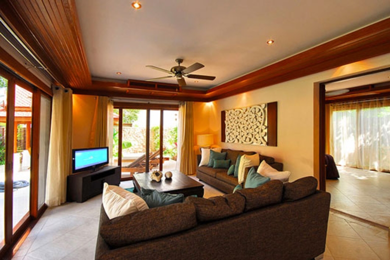 Lamai Leelavadee is a traditionally styled Koh Samui villa with scenic Thai roof tiles and hardwood fixtures and fittings all round. This villa has an abundance of western styled features in a luxurious environment, which means you can have a dream Koh Samui rental villa at your fingertips that would add an air of sophistication to every Thailand holiday. This mixture of a tropical island experience with touches of western luxury is a combination of your dreams. This Samui holiday villa is comfortable, spacious, enjoys copious amounts of natural sunlight and benefits from a selection of modern amenities. When you have been out for the day touring Samui Island, there will be nothing better than returning to the homely embrace of your private villa. When you immediately step foot in the villa, you’ll be impressed by the modern and spacious living areas with that natural blend of Asian and modern touches.