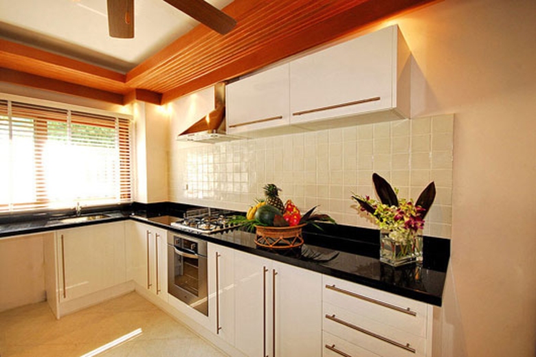 BedroomsThe house has three bedrooms altogether spread over two levels all with ensuite bathrooms. The Master bedroom is on the second level, has a queen size bed, walk-in wardrobes, a study area, a private balcony and an ensuite bathroom. Adjacent to the master, you will find the second bedroom with two single beds, a sofa, large balcony overlooking the pool, walk-in wardrobes and an ensuite bathroom. The third bedroom is situated on the ground floor and owns a double bed, desk area, an ensuite bathroom and direct pool access.
