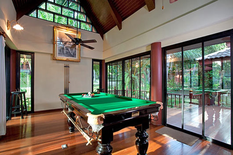 An Asian theme of decor and ambiance dominates this home-from-home villa on Thailands most popular island destination. Cosy bedrooms nestle in the roof space of the sharply raked Thai-style roofs, whilst large open areas downstairs give that feeling of space and tranquillity. There are four bedrooms and bathrooms, a modern kitchen, and large living areas to include an American pool table, where you can spend hours of endless fun and enjoyment. As part of a resort there are maid services, an in-house cook should you wish, and the benefits of alternative eating in the restaurant. The beach tops off the glorious tropical view amid palm trees and a well-maintained garden.