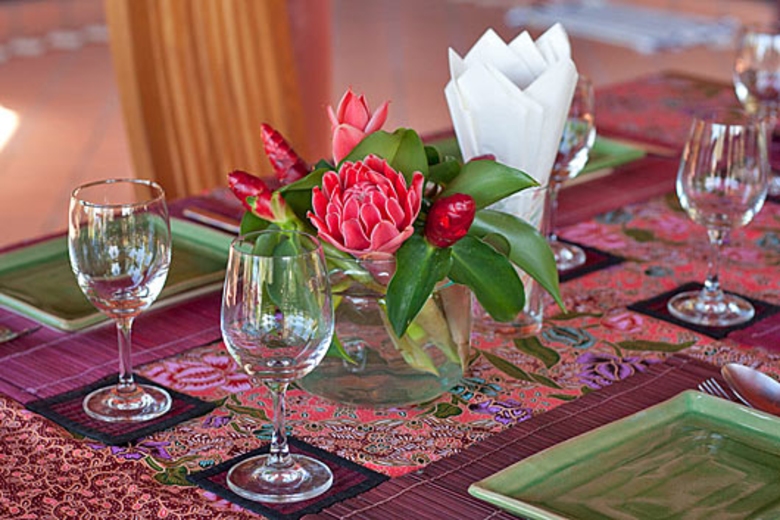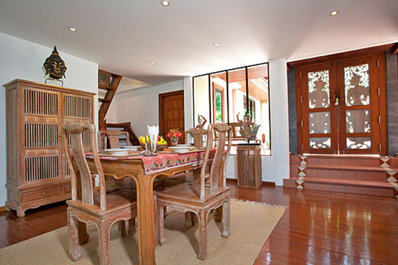 The indoor dining area consists of an antique-style table and four chairs in a delightful setting. When the guests arrive, it is time for press the al Fresco option into operation and sit under the garden Sala around the wooden dining table for eight, and admire those wonderful tropical views.
