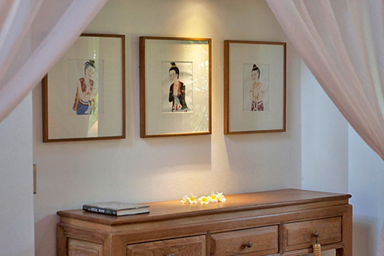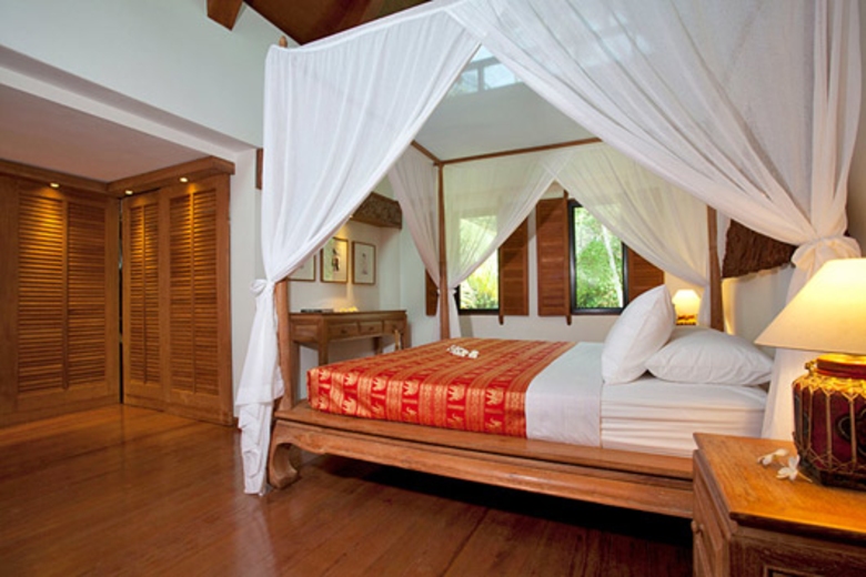 BedroomsThe three bedrooms in the villa offer comfort and luxury and are ideally suited to a family. There is a master bedroom with a four-poster bed complete with mosquito nets, a twin room, and a further double in the roof space under impressive vaulted timber ceilings. There is also air-conditioning to ensure perfect nights sleep.