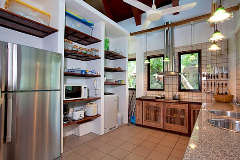 The modern kitchen has stovetops with extractor above, a toaster a rice cooker, kettle, and a fridge freezer for all the holiday provisions and cool drinks. For those that prefer give their cuisine a holiday, a cook is available to come and prepare meals for you if you book in advance.