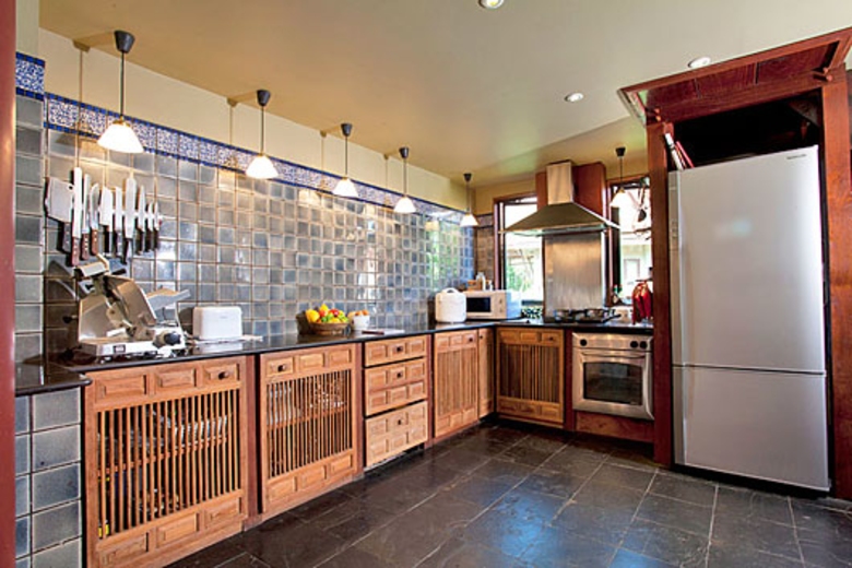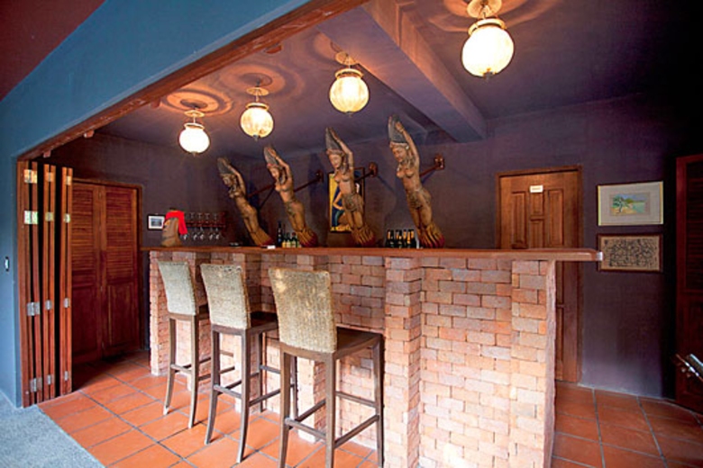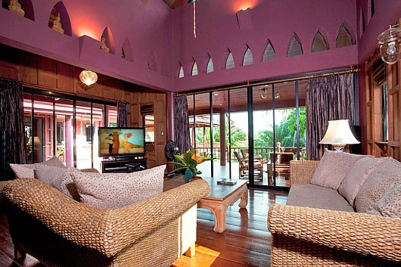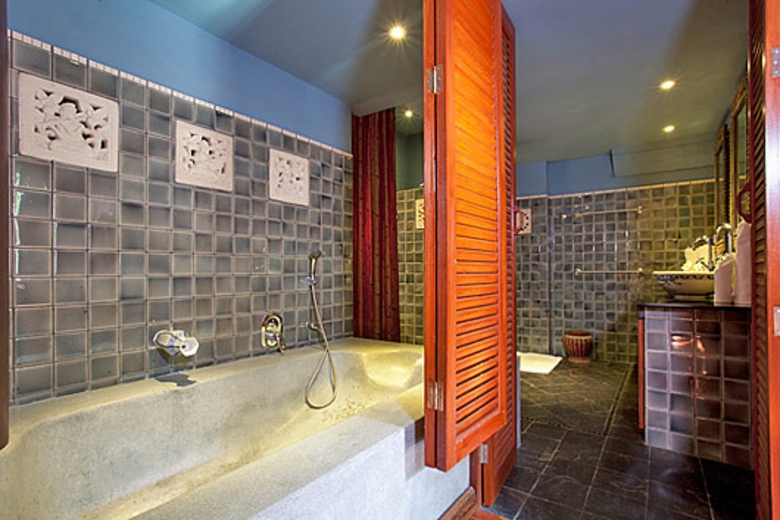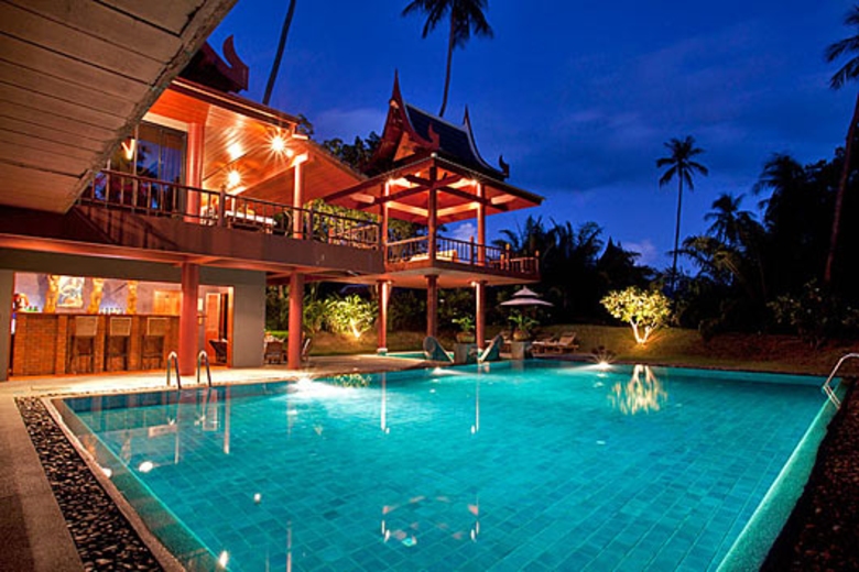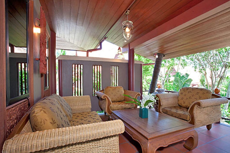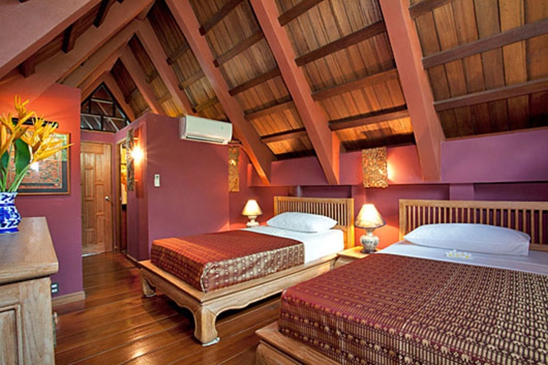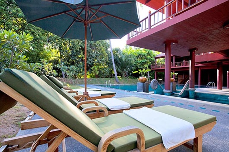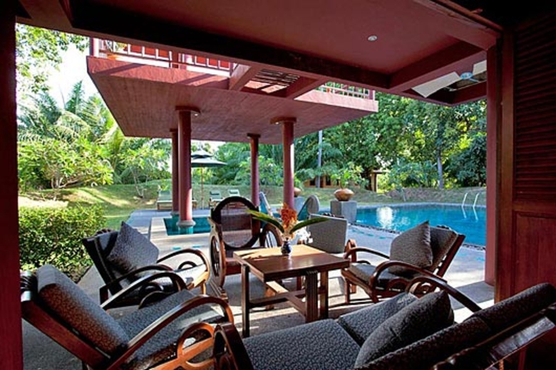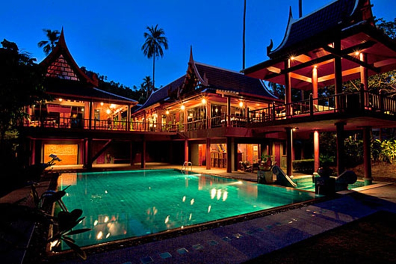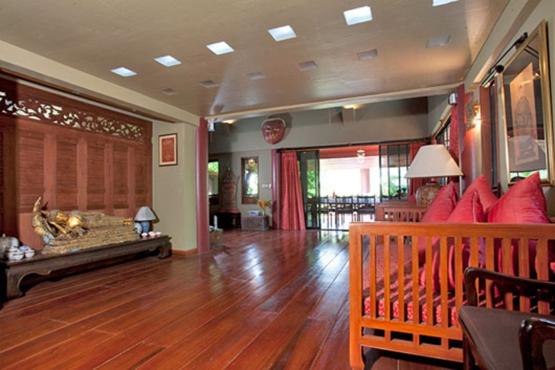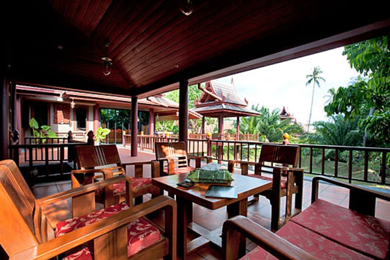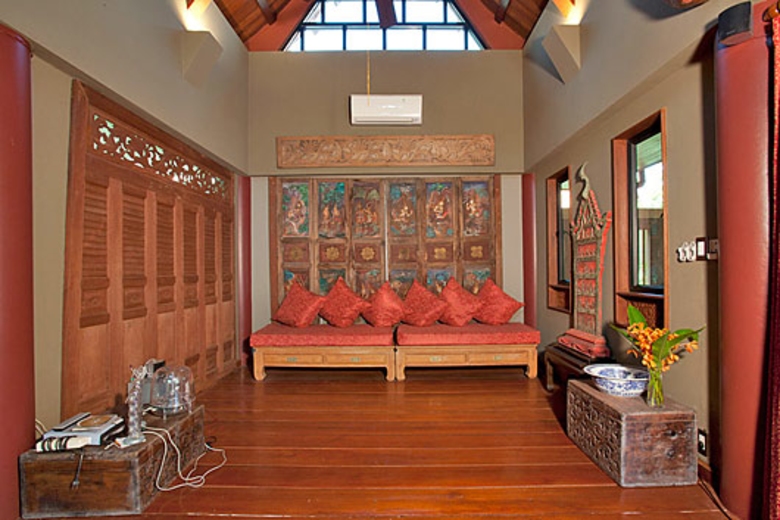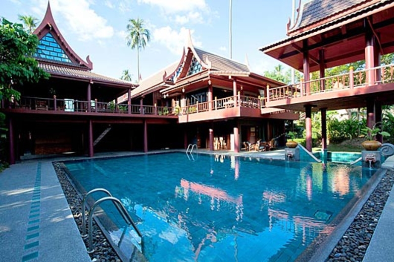 An imposing and impressive villa, this holiday destination leaves nothing to chance. Built mainly of wood with steep roofs overlooking the large oblong pool from two storeys, this seven-bedroom villa has all the luxuries combined with a feeling of being at one with nature in a tranquil setting. Attractive artefacts and antique-style furniture lend an Asian feel to the whole property. Outside there is plenty of opportunity to sunbathe on the loungers, or catch a bit of shade under the tropical umbrellas or even under a garden Sala set high above the pool where steps lead down into the inviting warm water. Large terraces, a superb tropical garden, and large living areas offer plenty of space for you and your group to enjoy the holiday of a lifetime.