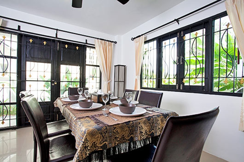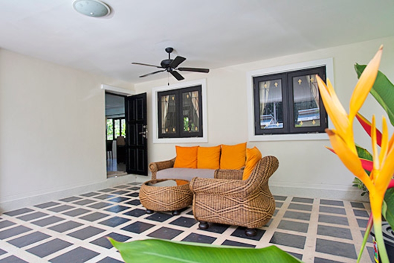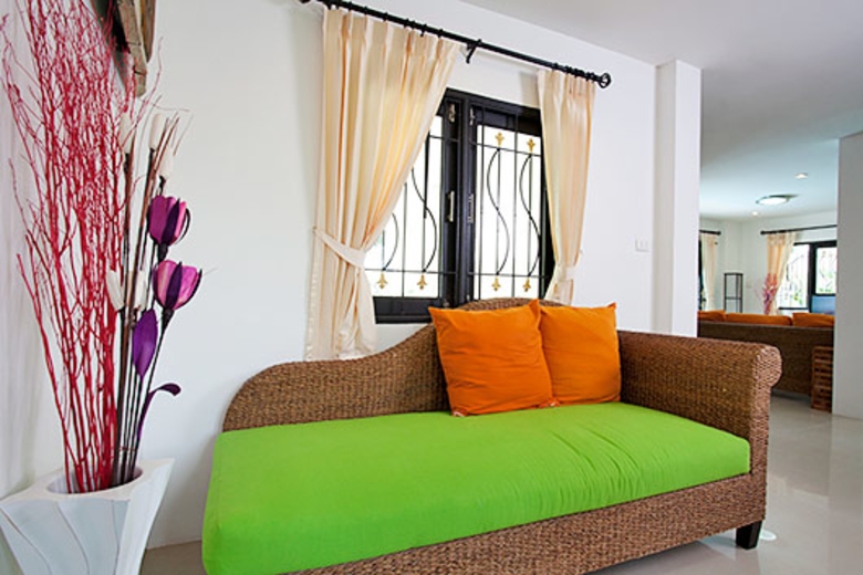 There are three beautifully appointed bedrooms in Baan Santhiya 2 that can sleep 8 persons in total. All three bedrooms have double beds, air-conditioning and ensuite bathroom facilities. This is a great holiday rental option for families because two of the bedrooms also have a single bed apiece. The Master bedroom also has its own flat-screen TV.