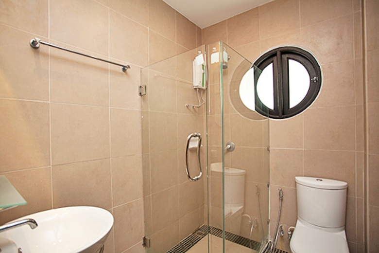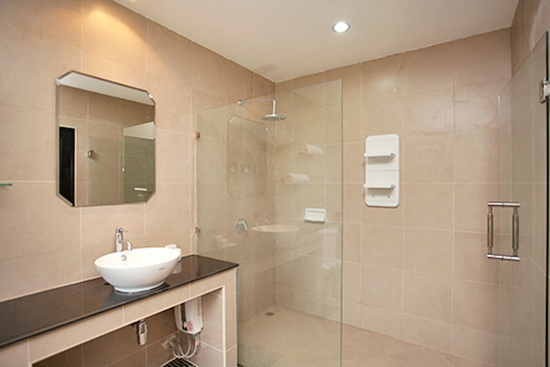 Baan Santhiya has three bathrooms, all of which are ensuite. The ensuite bathroom to the Master Bedroom has a walk-in shower, wash basin, toilet and a bathtub. The two remaining ensuite bathrooms have showers, wash basins and toilets.