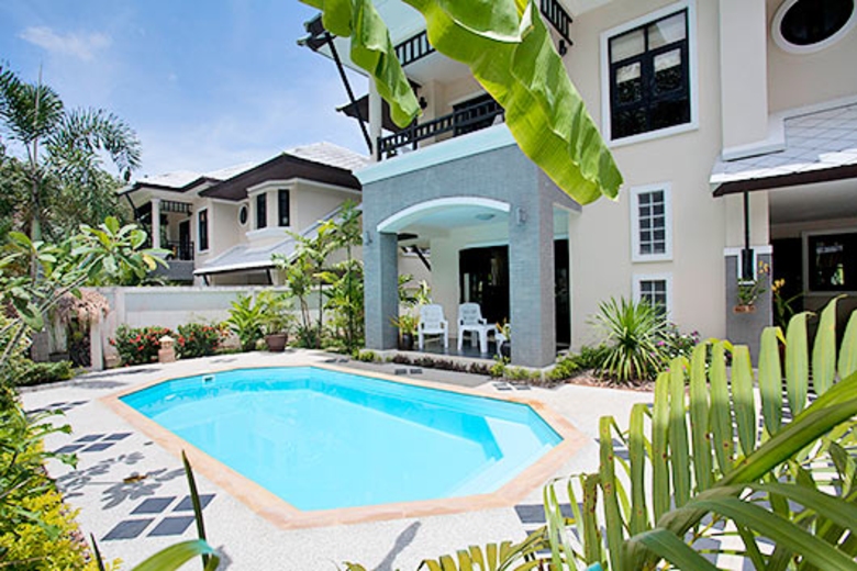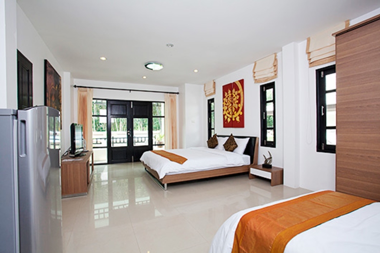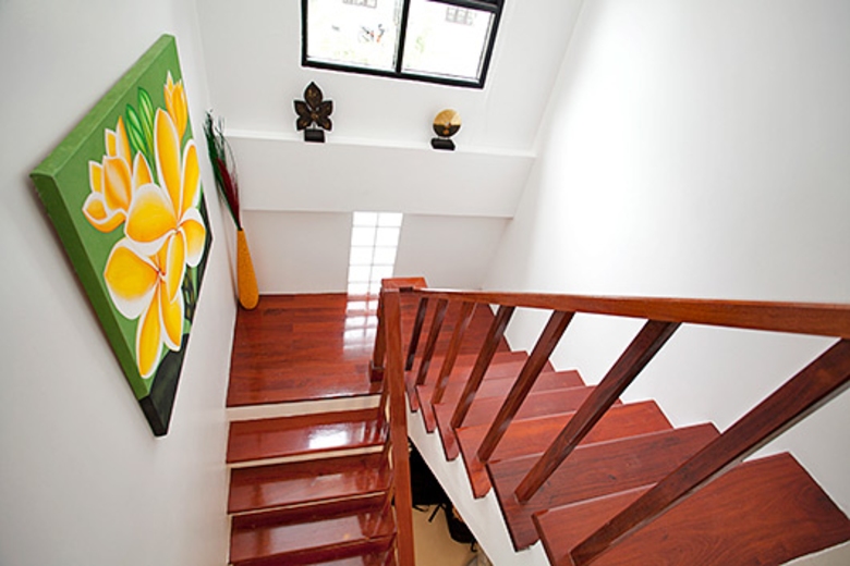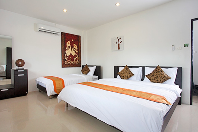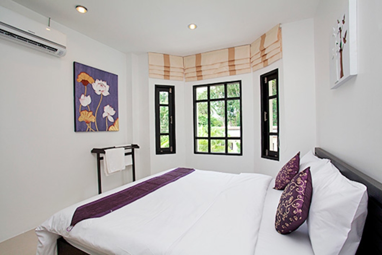 BedroomsThere are three beautifully appointed bedrooms in Baan Santhiya 2 that can sleep 8 persons in total. All three bedrooms have double beds, air-conditioning and ensuite bathroom facilities. This is a great holiday rental option for families because two of the bedrooms also have a single bed apiece. The Master bedroom also has its own flat-screen TV.