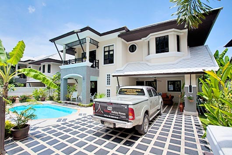 Enjoying a convenient and peaceful location at Na-Thai, 3km from the stunning and popular tourist destination of Ao Nang Beach, this three bedroom villa with a private swimming pool is in the perfect place for you to enjoy the wonderful natural scenery of Southern Thailand while at the same time being close to some of the nicest beaches in the region. This Krabi villa rental is set over two levels, with spacious living areas and a classy selection of furniture created in Chiang Mai that really blends in with the overall concept of the villa. With its gleaming ceramic tiled floors, a warm and friendly ‘home away from home’ atmosphere and three beautifully appointed bedrooms that can sleep up to 8 people, this is an amazing Krabi holiday villa rental choice. Just sit on your covered terrace and take in views overlooking your private swimming pool with a glass of wine in hand and absorb the tropical atmosphere. This modern tropical luxury villa has lots of space, perfect for groups of friends travelling together or a family getaway. The close proximity to Ao nang ensures lots of restaurants are nearby, and also many tour companies that can organize trips out to Phang Nga Bay, James Bond Island or the world-famous Phi Phi Islands.