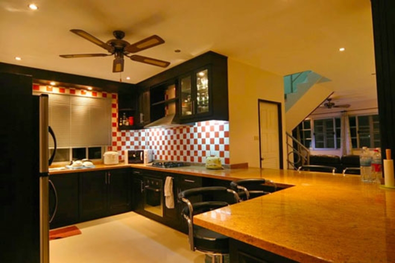 This is simply a great holiday rental home just 1.3km from Jomtien Beach and its abundance of international restaurants and entertainment areas. This is a stunning five-bedroom house with a private swimming pool and spacious living areas. Comfortably sleeping 12 persons, this is the perfect rental home for families or a group of friends holidaying together. When first visiting this house, you will notice a large carport area and a private swimming pool with an integral children’s pool. If you enjoy privacy and lots of space to relax and unwind, Baan Tantawan is perfect for you. With an open-plan lounge and a homely atmosphere, you can relax in luxury and privacy until your heart’s content. Baan Tantawan is situated on a private gated estate with 24-hour security.