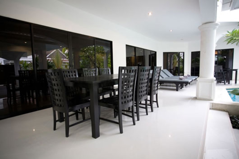 This graceful and welcoming estate home is within the ground of Na Jomtien Resort which is famous for its haute cuisine Elephant Café restaurant. Here you will enjoy Thai and international dishes prepared by world class chefs without ever having to get in your car. The nearest beach is just 400 meters away from the resort. There is also a spa where you can be pampered at your leisure. When you are ready for some of the exciting night life for which Pattaya is so well know, it is only a twenty minute drive to the Walking Street, Floating Market or Alangkarn Theatre. Also nearby are the Big Buddha, Silverlake Vineyard and the Phoenix Golf Club. The famous seafood restaurant, Rimpa Lapin is just a five-minute drive away.