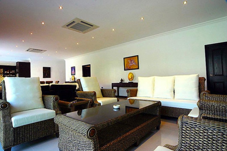 The artistic use of colour and natural materials makes this holiday home more than just a place to stay. With much of the furniture constructed of rare teak wood from Northern Thailand, every room has great visual appeal. The spacious double living room has two sitting areas - one with woven water hyacinth sofas and chairs with deep cushions and glass top tables.