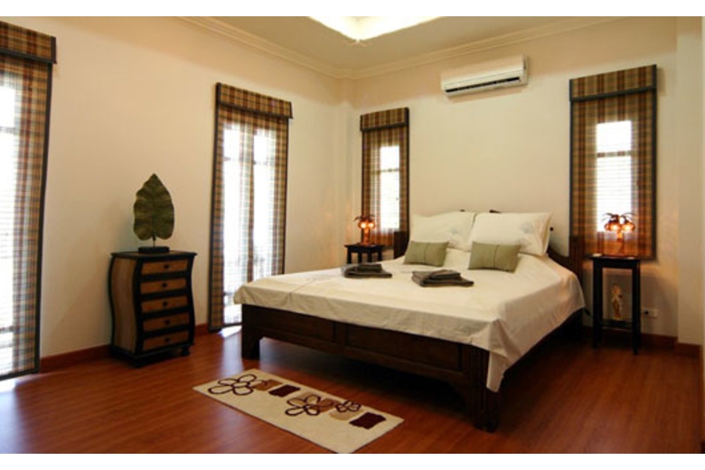 BedroomsAll the three bedrooms have air-conditioning and relaxing environments. The Master Bedroom has a king-size bed with nice wooden furniture and lots of room. The second bedroom is similar to the master, with a king-size bed and stylish furniture and fittings. The third bedroom has two twin beds, which is ideal for those travelling with children.