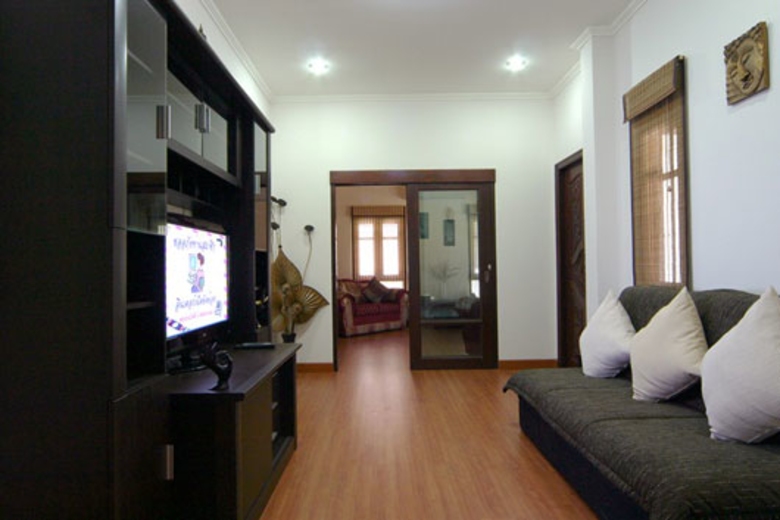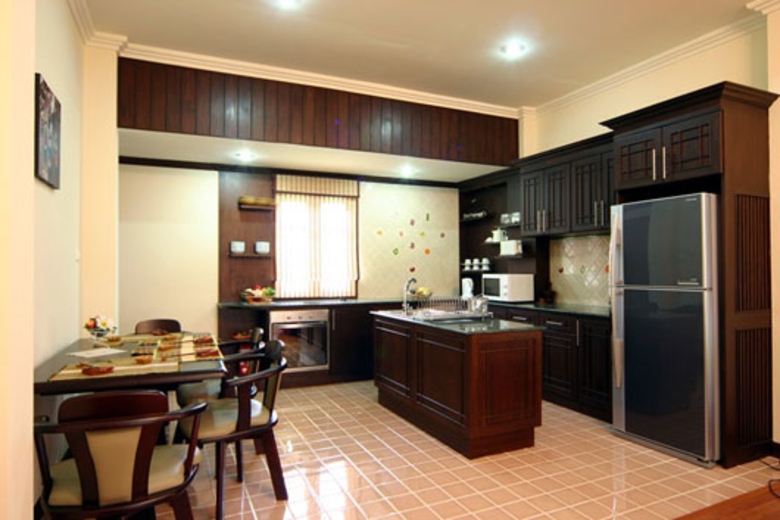 All the three bedrooms have air-conditioning and relaxing environments. The Master Bedroom has a king-size bed with nice wooden furniture and lots of room. The second bedroom is similar to the master, with a king-size bed and stylish furniture and fittings. The third bedroom has two twin beds, which is ideal for those travelling with children.