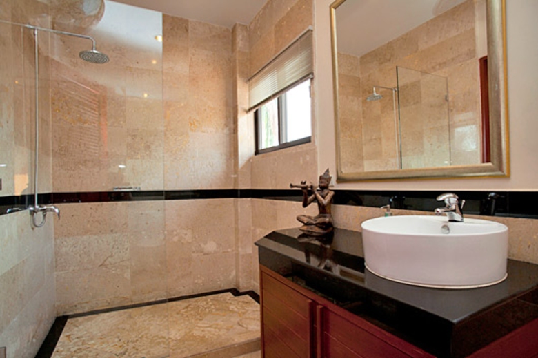 All four bathrooms are connected to a bedroom for the convenience of villa dwellers and they all consist of showers, toilets, and sinks.