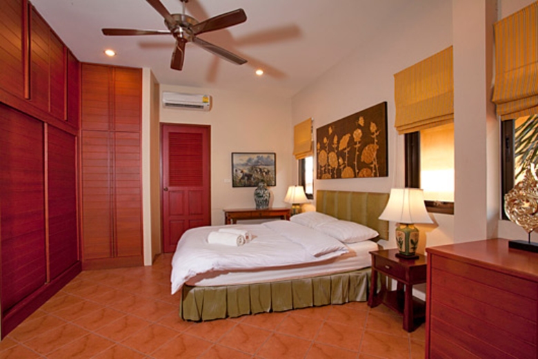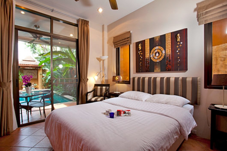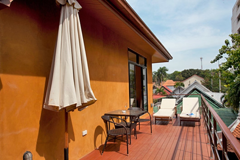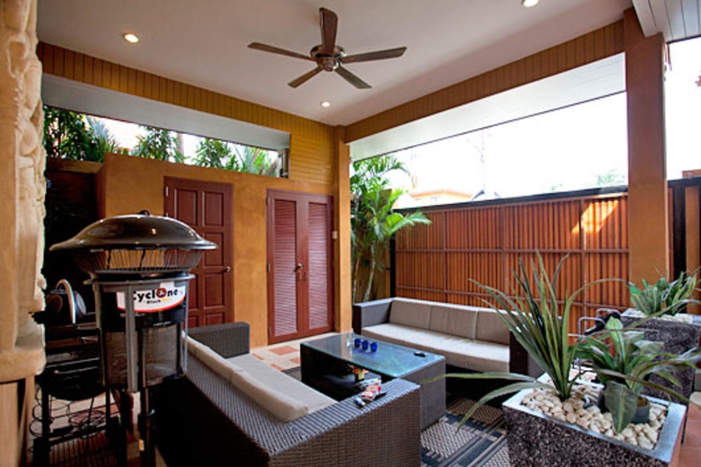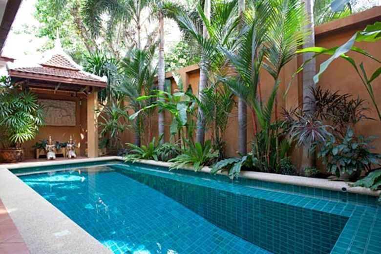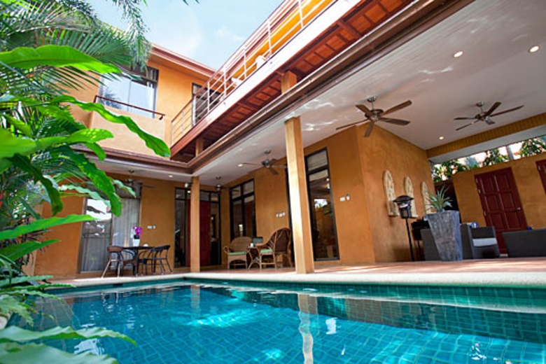 This stunning 4-bedroom villa located just 1 km from Jomtien Beach is situated within prime Pattaya, Thailand's holiday territory, which is a perfect spot for vacation rentals. Set over two floors with a 260sqm area, the moment you walk through the tall entrance doors of the garden you will encounter a very shaded courtyard, which is a much needed oasis with a centerpiece swimming pool and a covered terrace area. The villa has a real modern Asian flair and is furnished to very high quality standards with luxury and attention to detail in mind. The villa is surrounded by a tall perimeter wall that provides you with lots of seclusion and privacy. There are four bedrooms in total, all with a nice ambience. The villa sleeps 8 persons, although one of the bedrooms has additional bunk beds that can sleep two extra children. With a location just 800m from Jomtien Beach, high quality furnishings, a private pool and very affordable rates, this Pattaya villa rental is a great choice for both families and groups travelling to Thailand together.