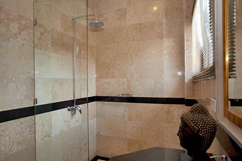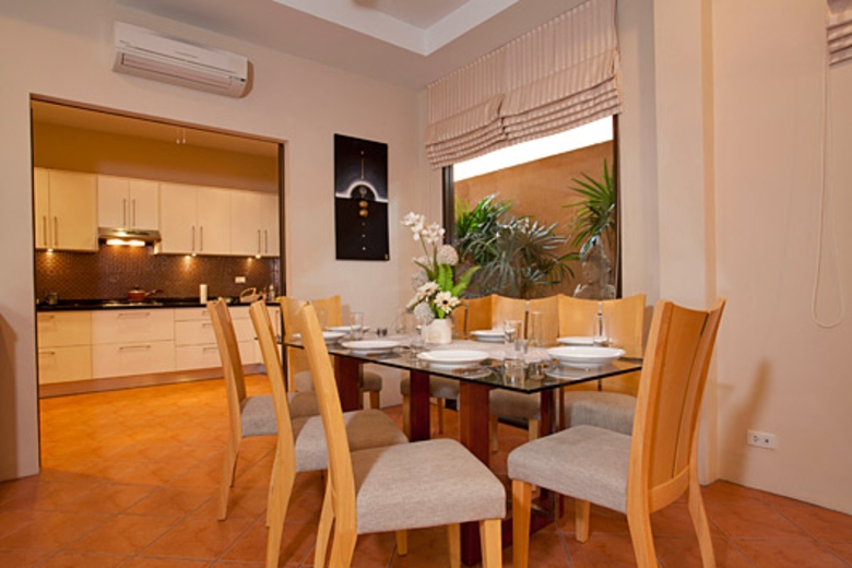 BedroomsIn total the villa can accommodate up to 8 adults and 2 children in the four bedrooms. Each room comes with a double bed with one of the rooms containing an extra bunk bed for young ones. All rooms are connected to their own separate bathrooms. Air-conditioning and wardrobes are also available in each of the bedrooms. The Master room is connected to the upper level terrace which gives guests a great view and fresh air.