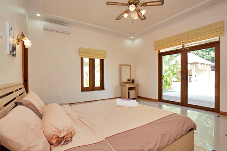 BedroomsThe four bedrooms at Baan Foxlea II were clearly designed and decorated with care. You can enjoy the feeling of total comfort and peacefulness that should accompany any holiday the moment you step into any of the sleeping quarters. Three of the bedrooms are outfitted with double beds and the fourth has two single beds perfect for families or groups of friends taking holiday together. All bedrooms have air-conditioning throughout allowing you to maintain an ideal sleeping temperature. Three of the bedrooms further feature en suite bathrooms. If you enjoy taking a dip in the early morning you will enjoy sleeping in one of the two rooms that have immediate poolside access.
