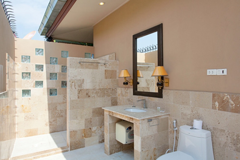 The villa has three bathrooms which are connected to each bedroom. The master bedroom has an outdoor bath with a two person whirlpool bath. This bath is well hidden so there is plenty of privacy.
