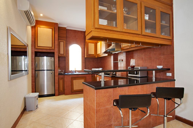 BedroomsThere are two bedrooms in Baan Tawan 2, both of which have been designed with your comfort and relaxation in mind. Both bedrooms are decorated in light tones and come equipped with air-conditioning, built-in wardrobe facilities, double beds and ensuite bathrooms. One of the bedrooms provides direct access out to the pool, which is a great way to wake up each morning during your Pattaya holiday. The second bedroom also has a television.