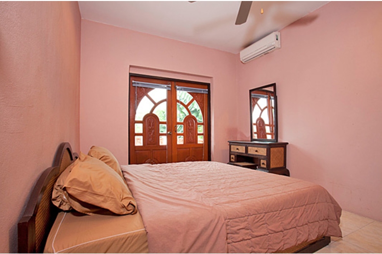 BedroomsThe villa has four bedrooms. Three are located upstairs. The master bedroom has a double bed, flat screen TV, balcony overlooking the pool, and ensuite bathroom. The two other upstairs bedrooms have double beds, air-conditioning and ensuite bathrooms. The fourth bedroom is located in a separate building behind the house. It has a double bed, air-conditioning, and ensuite bathroom.