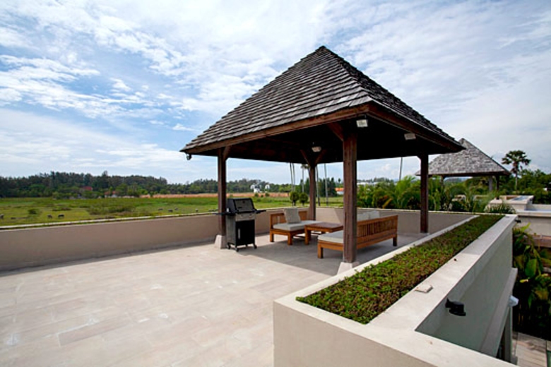 This very spacious area has several nice sofas facing the pool, the beautiful Thai artwork give this space a luxury tropical feel, so just relax and watch a movie on the villa’s plasma TV, satellite system and DVD or plan a party on the roof terrace.