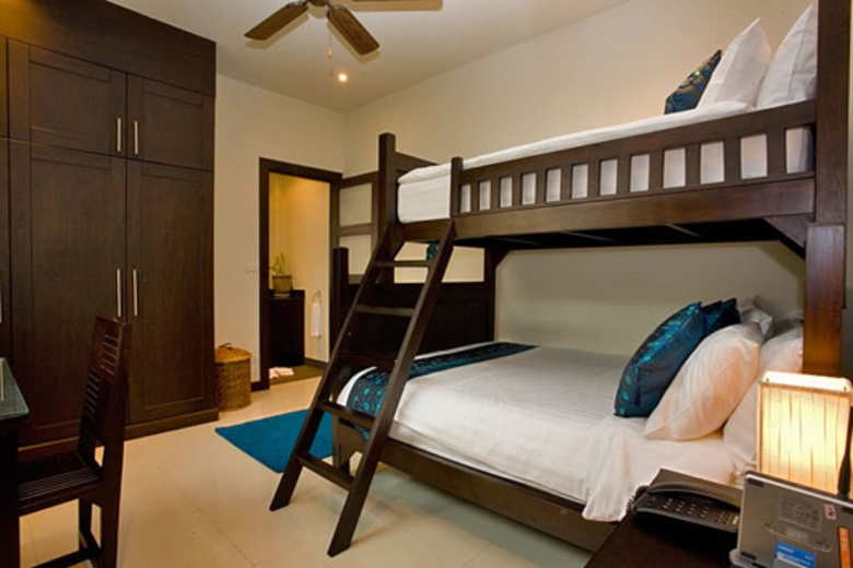 BedroomsThe villa has four bedrooms that ensure the accommodation of nine persons. The master bedroom offers a king-size four-post bed, a spacious integral wardrobe, an individual ensuite bathroom with bathtub and a shower room. It has large double doors that lead directly to the terrace and to the private pool (where the second and third room can also be accessed). The fourth room, without the direct access to the pool, is still unique with the setup of double bed and an attached bunk bed. The fourth bedroom also has its own individual bathroom.