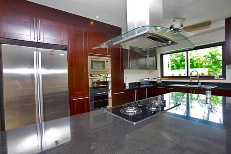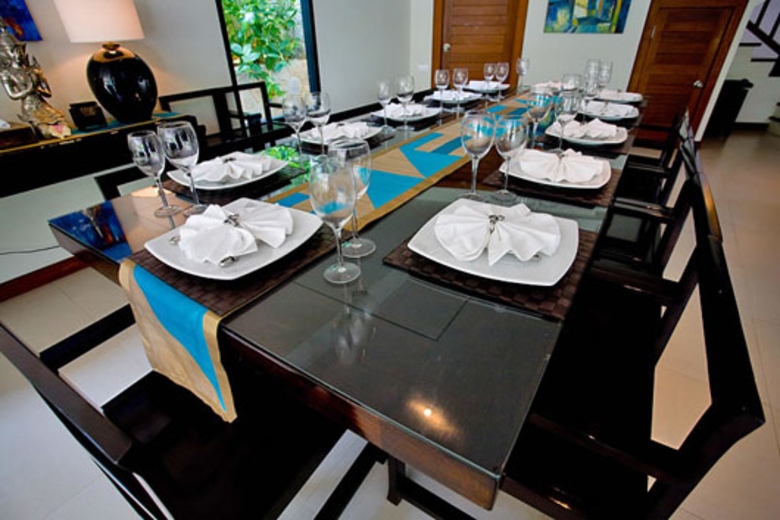 The spacious living area encompasses nearly half of the downstairs area offering plenty of room to unwind after a day at the beach. The layout includes direct access to an outdoor sundeck and sala where one can enjoy outdoor dining accommodations. Classy furniture such as a 3 meter dining table and 3 comfortable settees add to the lavish décor and ambiance. The lounge is further equipped with a full home entertainment system including a 42 inch LG flat-screen television, DVD player and full surround sound music system. Families with children can further enjoy the vast selection of DVDs and CDs supplied for your use that include numerous children’s favorites.