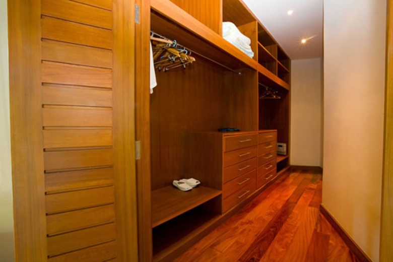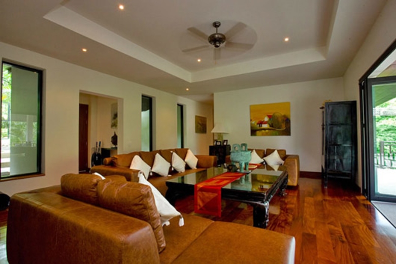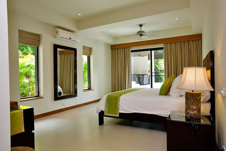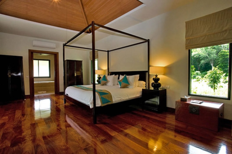 This Phuket villa design mixes natural and modern materials throughout with wooden floors and pristine white ceramic tiles creating a modern decadent ambiance that melds perfectly into the tropical surroundings. Attention has clearly been paid to every detail and is evident within the vaulted wooden ceilings, unique wine cellar and wide selection of contemporary artworks adorning the walls throughout the villa. A large and meticulously landscaped garden offers plenty of seating for guests and is only a short walk from the private swimming pool and terrace areas with outdoor dining areas. Enjoy a meal poolside while listening to the sounds of the tropical jungle. This Phuket villa rental is equipped to accommodate up to ten guests with ease. Guests are asked to please confirm the number of guests who will be joining their holiday group in advance, as extra charges will be applied for additional guests.