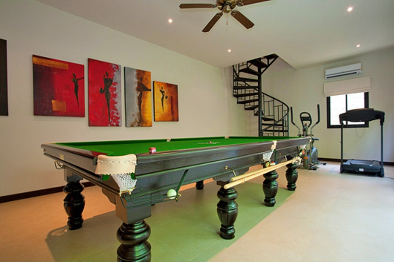 The sundecks complete with rattan swings are a great place to let an afternoon slip away as you lounge poolside. Your entertainment needs are completely covered with a wide flat-screen TV, DVD player and top-of-the-line surround sound music system at your disposal. Guests can also enjoy access to WI-FI throughout the villa and place direct dial international phone calls if they desire. The game room of the villa features both a pool table, darts and a full gym for those who like a little friendly gaming on their holiday. A mini-bar and counter is also included allowing you to celebrate your pool victory with ease. Guests are asked to please confirm the number of persons in their party with the villa staff in advance as additional charges may be required for extra guests.